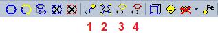 Sample #3: Reduce (a molecule cluster) directly You can dismantle a molecule cluster step-by-step using the Reduce command (either from the Build menu, giving you several options, such as where to start from -- a selected atom/molecule or from the center of the picture) or simply clicking the button highlighted at the bottom of the next screen shot: