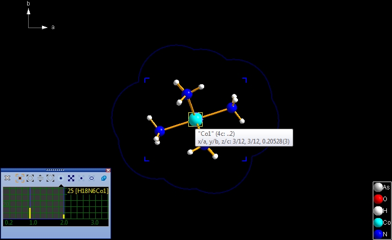(1) Move the mouse cursor to the "Co1" atom in the center of the Co(NH3)6 molecule.