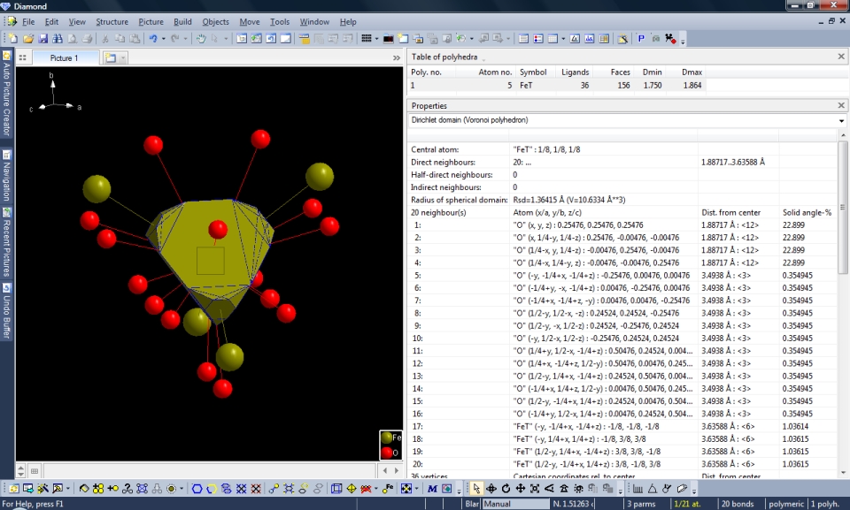 2.060 Angstroms). To study the Voronoi polyhedron of the site "FeM", we do the following