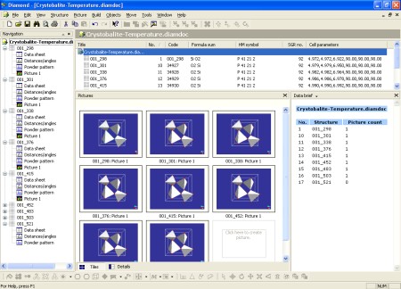 Screen shot of version 3.1 with a temperature study of crystoballite structures
