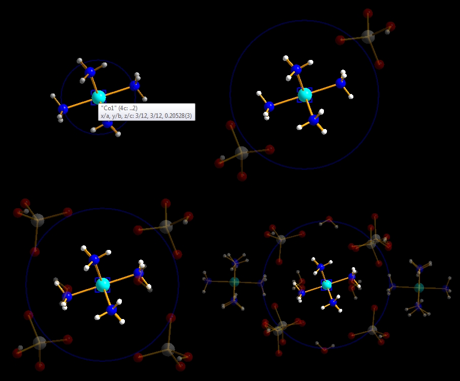 (1) Move the mouse cursor to the "Co1" atom in the center of the Co(NH3)6 molecule.