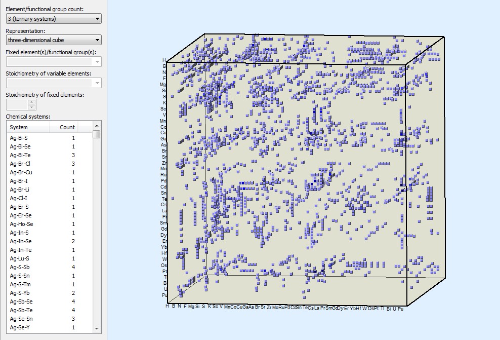Pearson's Crystal Data Features: Chemical system matrix