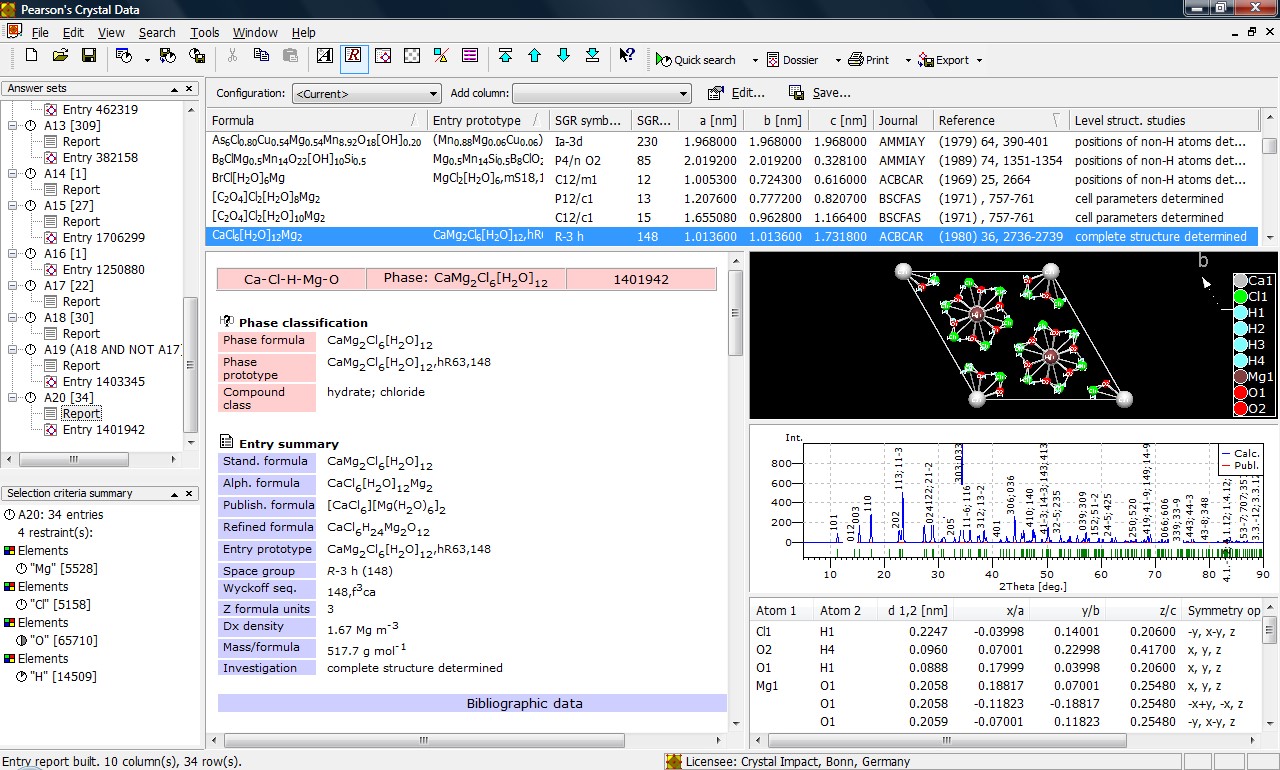 The rest: Data sheet, 3D structure picture, diffraction diagram, and distances list